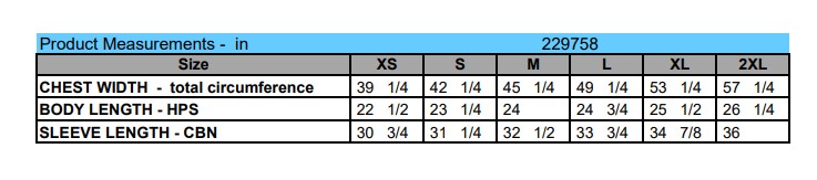 - Spandex rib-knit cuffs and bottom band