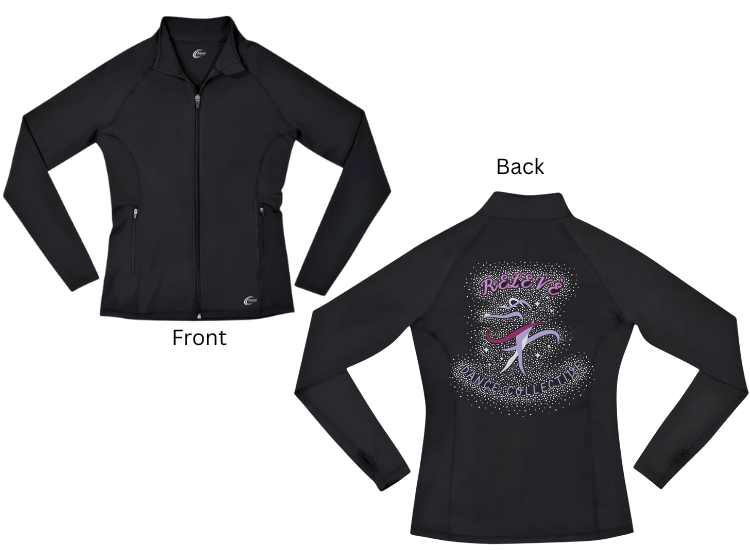 RELEVE Dance Collective Jacket with rhinestones and glitter.